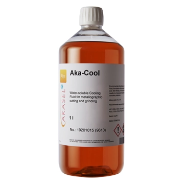 올바른 냉각을 통해 최상의 절단 결과를 얻고 절단 휠의 성능을 최적화하려면 Aka-Cool, 수용성 냉각수를 사용하는 것이 좋습니다. 이 냉각수는 샘플 표면의 열 손상을 최소화 하며, 샘플 재료와 기계 모두에 대한 부식 방지 역할을합니다.